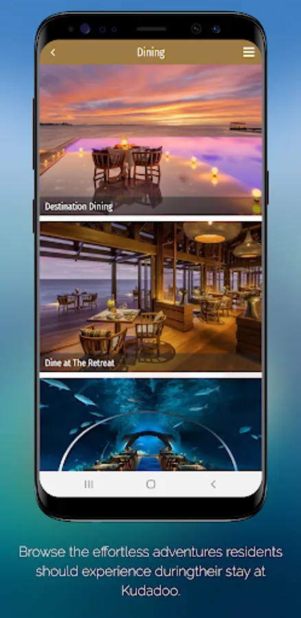 Use this App as an addition to your personal Butler service at Kudadoo. Complete the check in formalities before you arrive, directly in the App. During your stay the App provides the perfect travel companion, showing your Thajuribaa of your culinary journey, experiences and effortless adventures.