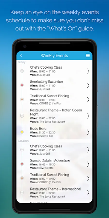 - book restaurant tables, excursions and activities such as snorkelling, scuba diving or spa treatments.