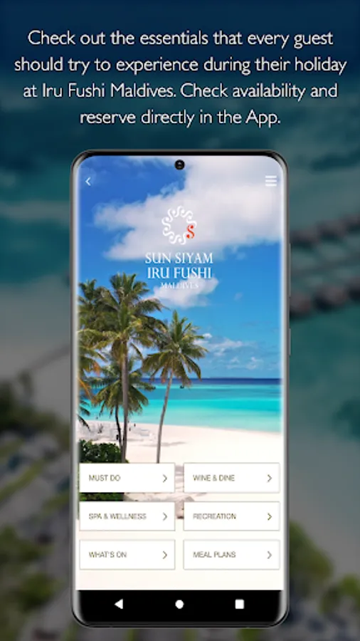 Explore Sun Siyam Iru Fushi and its stunning facilities, plan your visit and activities from your device before and during your visit. Use this app to start planning your stay, and ensure you don’t miss-out on any of the incredible experiences on offer at Iru Fushi Maldives. Contactless check-in can be done before your arrival at your convenience. During your stay the app provides the perfect travel companion, showing what’s on, providing you with fantastic inspiration from the recommended bucket list experiences which you can book directly from the app. Your itinerary is always accessible to see what adventures you have planned.