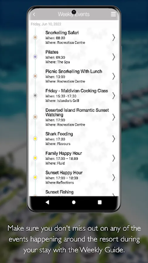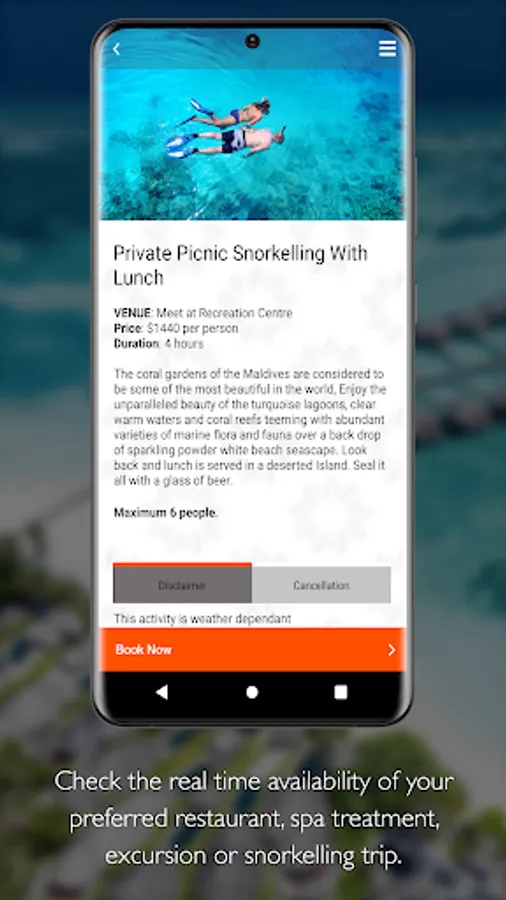 - Perfect your stay by booking restaurant tables, excursions and activities such as snorkelling, scuba diving or spa treatments;