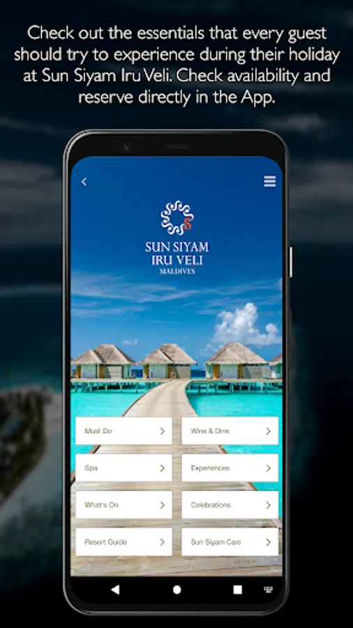 Explore Sun Siyam Iru Veli and its stunning facilities, plan your visit and activities from your device before and during your visit. Use this app to start planning your stay, and ensure you don’t miss-out on any of the incredible experiences on offer at Iru Veli Maldives. During your stay the app provides the perfect travel companion, showing what’s on, providing you with fantastic inspiration from the recommended Must do list of experiences which you can book directly from the app. Your itinerary is always accessible to see what adventures you have planned.