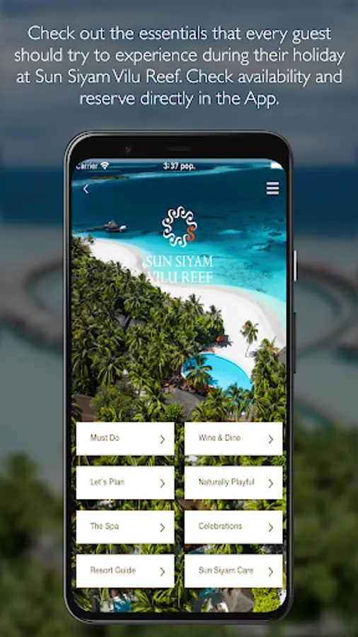 Explore Sun Siyam Vilu Reef and its stunning facilities, plan your visit and activities from your device before and during your visit. Use this app to start planning your stay, and ensure you don’t miss-out on any of the incredible experiences on offer at Vilu Reef Maldives. During your stay the app provides the perfect travel companion, showing what’s on, providing you with fantastic inspiration from the recommended Must do list of experiences which you can book directly from the app. Your itinerary is always accessible to see what adventures you have planned.