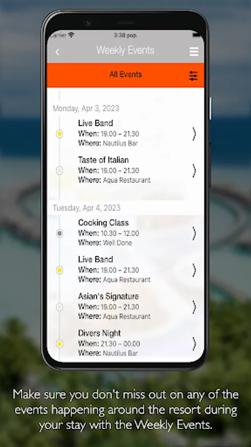 - View your bills that you are incurred while at the resort;