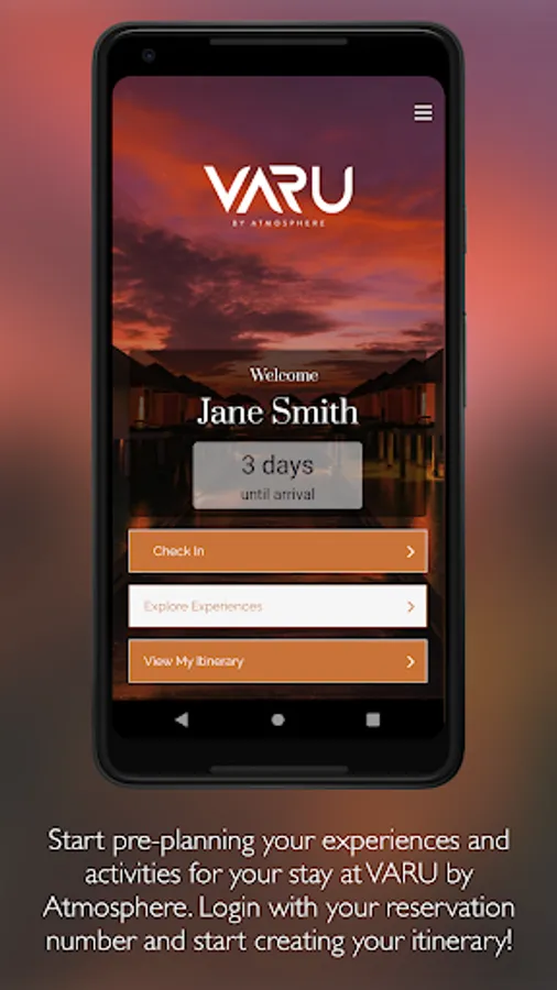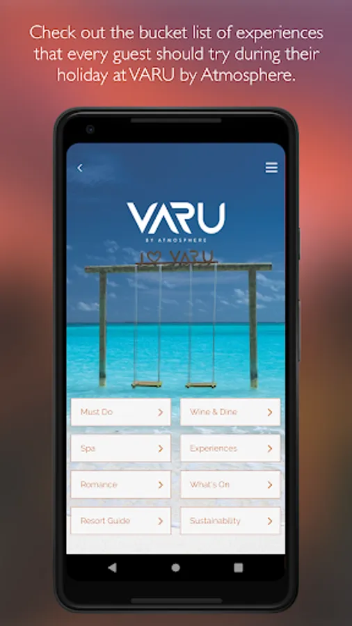 Explore VARU by Atmosphere and its stunning facilities, plan your visit and activities from your device before and during your visit. Use this App to start planning your stay, and ensure you don’t miss-out on any of the incredible experiences on offer at VARU. Complete the check in formalities before you arrive, direct from the App. During your stay the App provides the perfect travel companion, showing your itinerary, what’s on and providing you with inspiration from the must-do experiences. It even allows you to start planning your return visit.