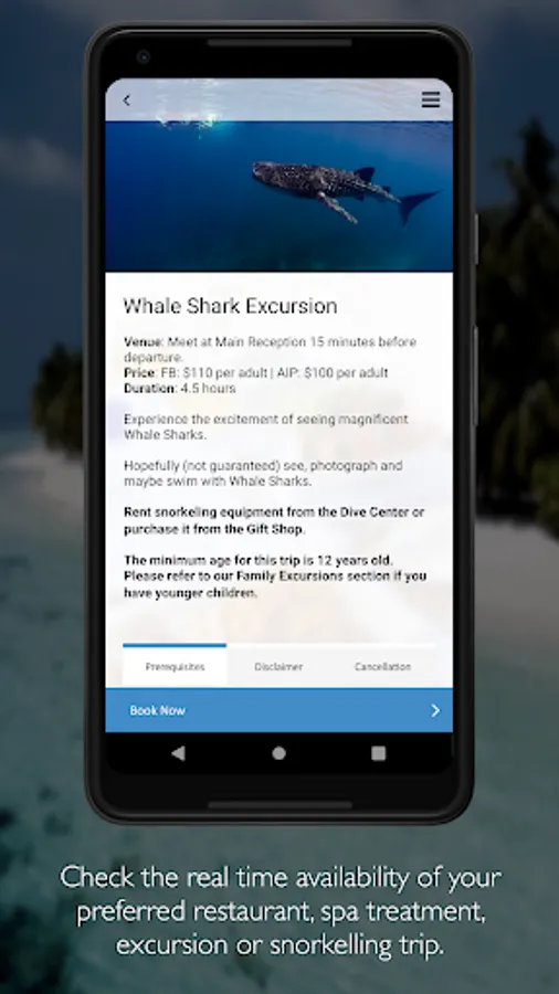 - Perfect your stay by booking restaurant experiences, excursions and activities such as snorkelling, scuba diving or to book spa treatments;