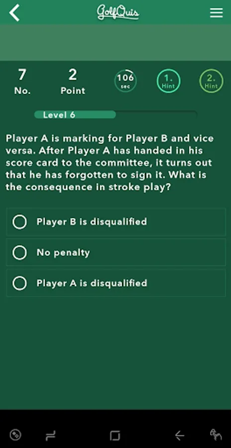 GolfQuis is a learning app with the defined purpose of helping golfers to learn and remember the Rules of Golf.