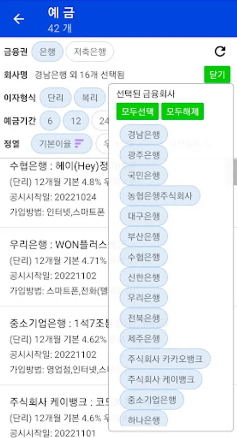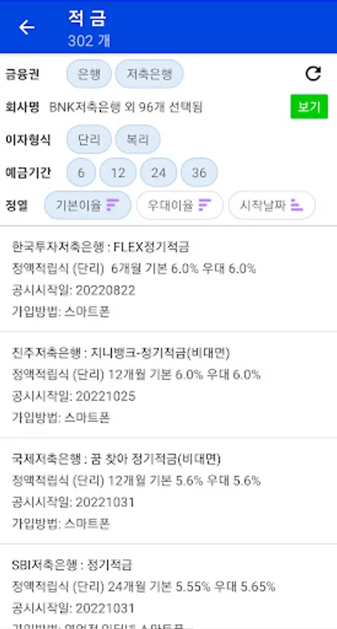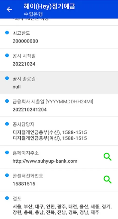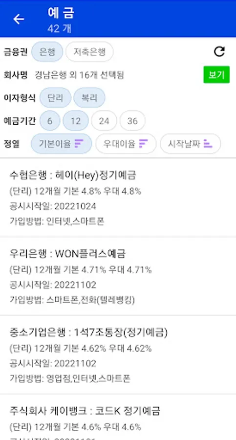 Financial company product information data provided: Financial product comparison and disclosure system (Financial Supervisory Service)