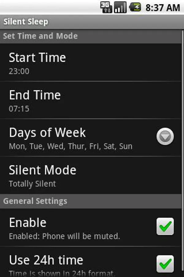 Simply set a start and end time with Silent Sleep and it will mute and unmute your phone accordingly.