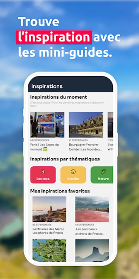 Find more than 60,000 suggestions for visits, places, activities and events to discover throughout France. Share your photos or video stories to highlight them to other users. Filters and personalized recommendations make it easy to find ideas based on your situation.