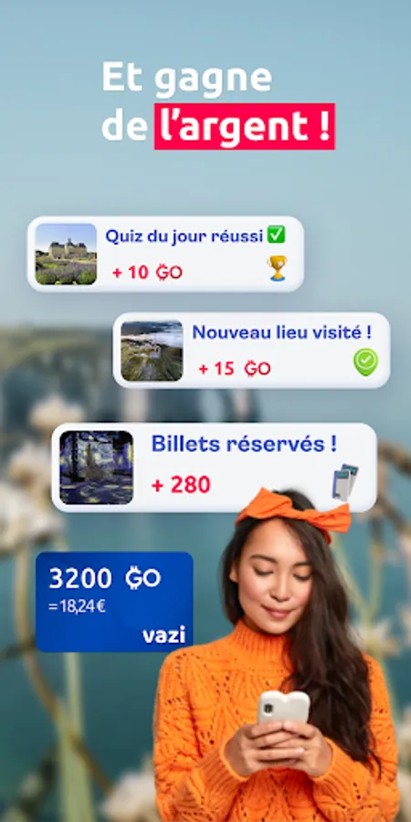 Earn GB by buying your tickets from the app (museums, leisure activities, exhibitions, etc.), by participating in the Daily Quiz or by visiting the places listed on the app!