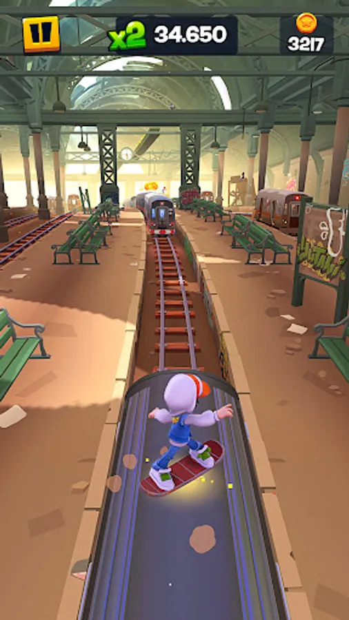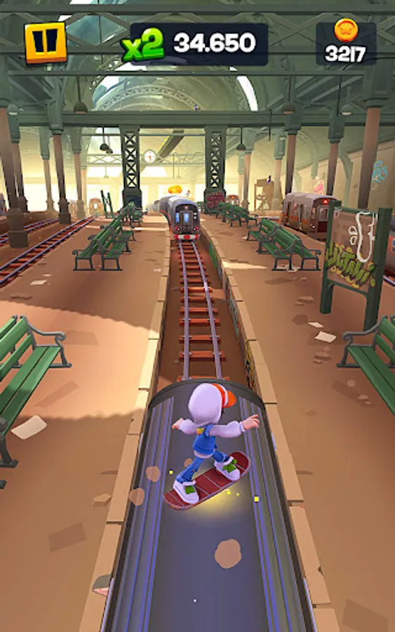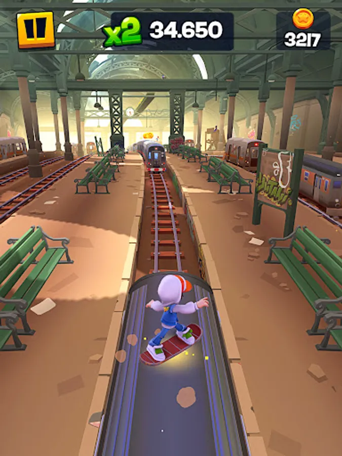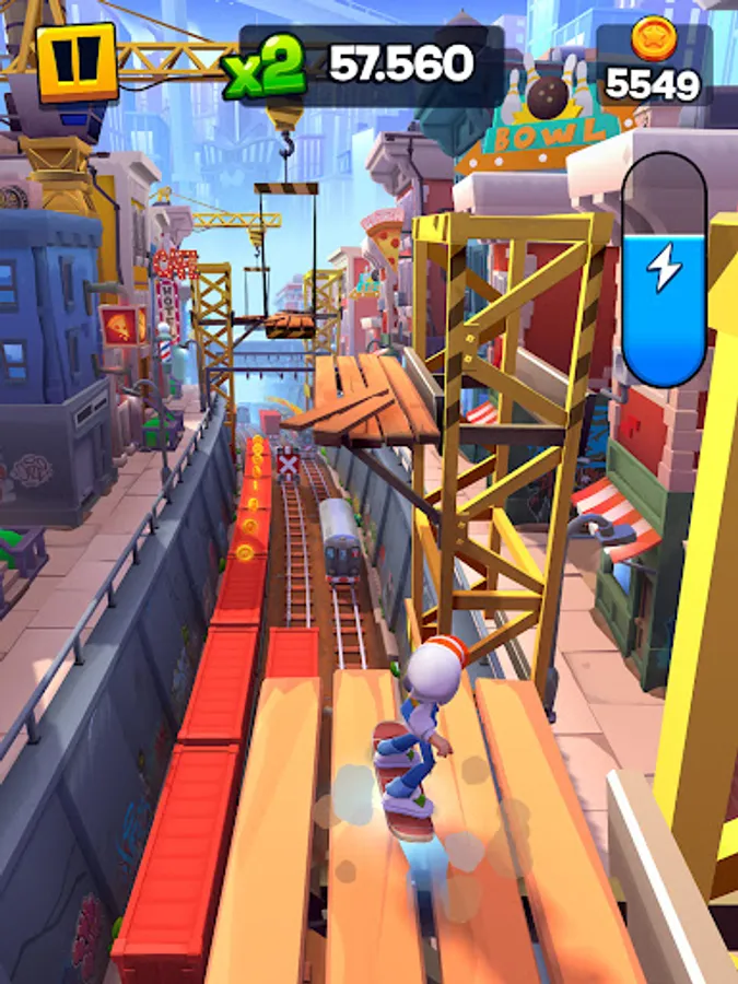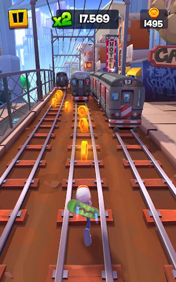 Collect and upgrade surfers, achieve new heights by using the Bouncy Tarps, and charge and activate your hoverboard for a great boost!