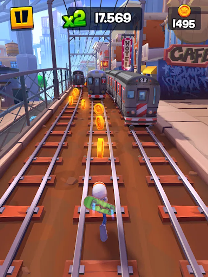 Surf through the city streets in an attempt to escape the relentless guard. Run as fast as you can while collecting lots of coins and amazing power-ups to be crowned as the next Hoverboard Hero. Jump into the action, and remember: don’t stop running!