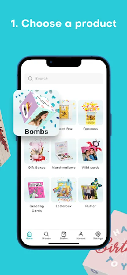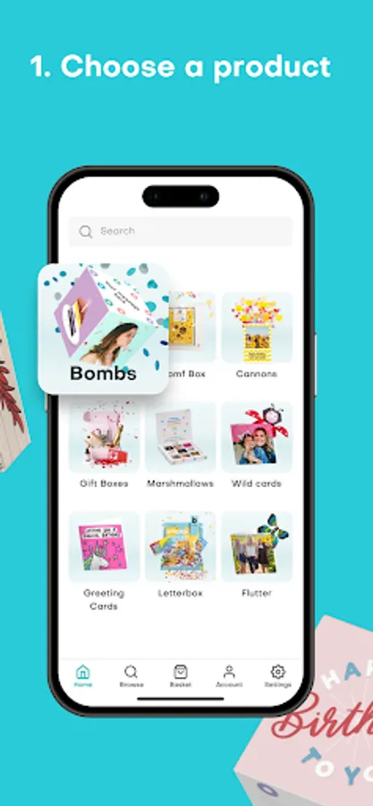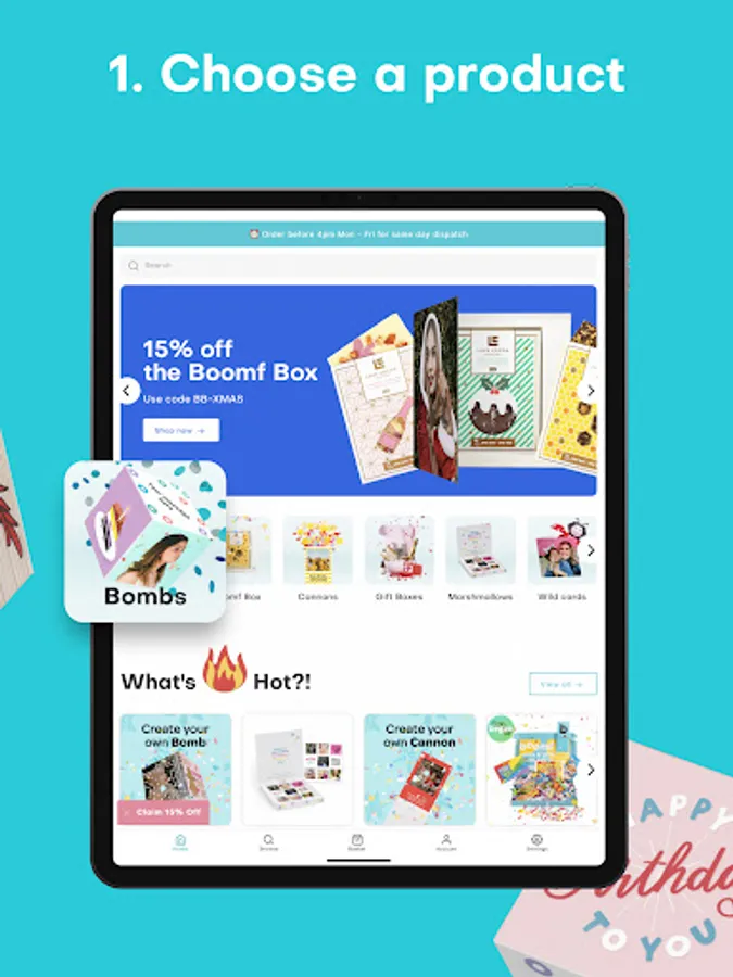 - Unique cards & gifts. From our viral Boomf Bombs to exploding confetti gift boxes, from the cute 3D pop-up cards to the yummy photo marshmallows - every Boomf creation is one of a kind.