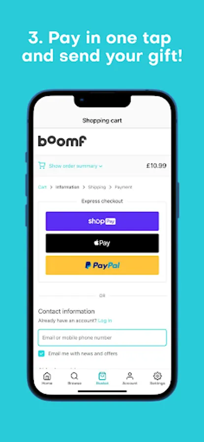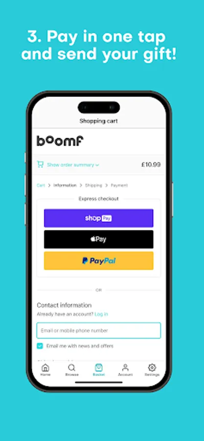 - Stay connected. Find the delivery option that suits you best. Even if you forget about an upcoming birthday and need a card or gift ASAP, Boomf will handle it.