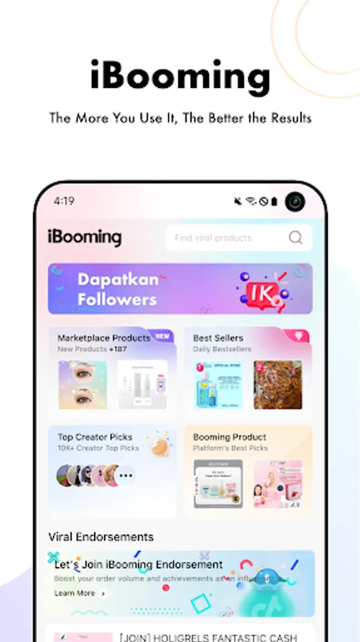 Bring you closer to brands or influencers that align with your profile through algorithms to boost your TikTok sales. The iBooming app keeps you informed about what matters to you. The more you use iBooming, the better the results!