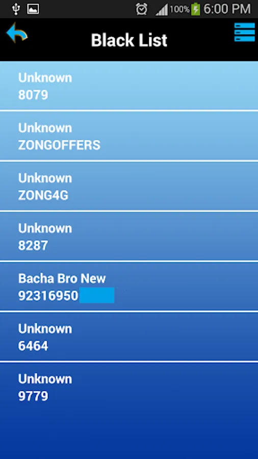 You can add any unwanted numbers to the “Blacklist” from the calls log, contacts list or input the number manually. Also, by using “Begins with” option, you can block a range of numbers with certain first digits.