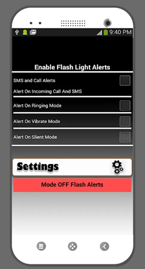 2. Modes control: Flash when on silent, vibration or normal mode.
