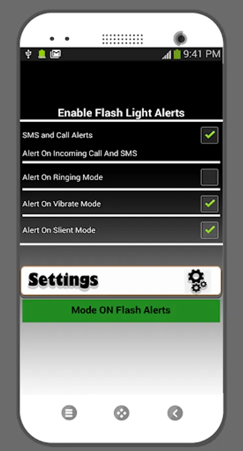 Flash alert on call sms feature can help the user with a disability. Easy to find out your phone in black night using flash alerts on call sms.