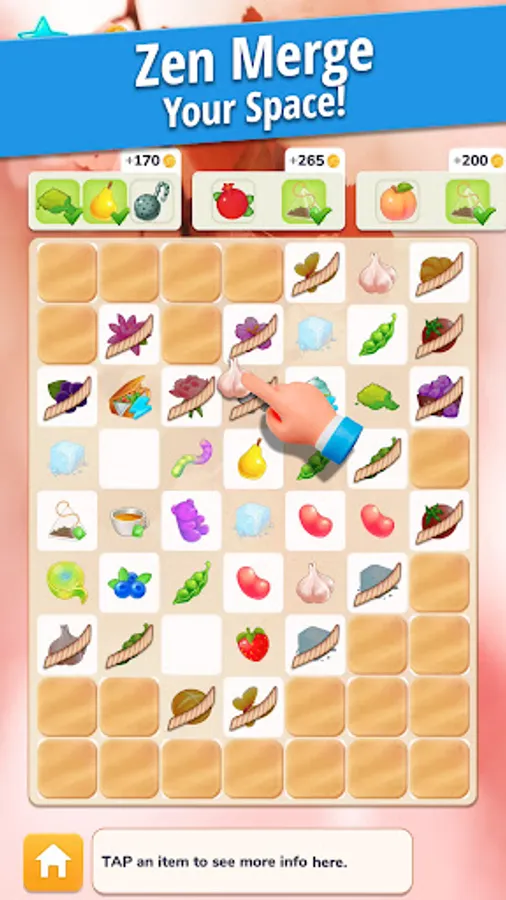 Enjoy this merge items game, have a moment of peace throughout your day to calm your mind and boost your brain while merging beautiful items. Find new items, merge them into beautiful tools and earn surprising treasures.