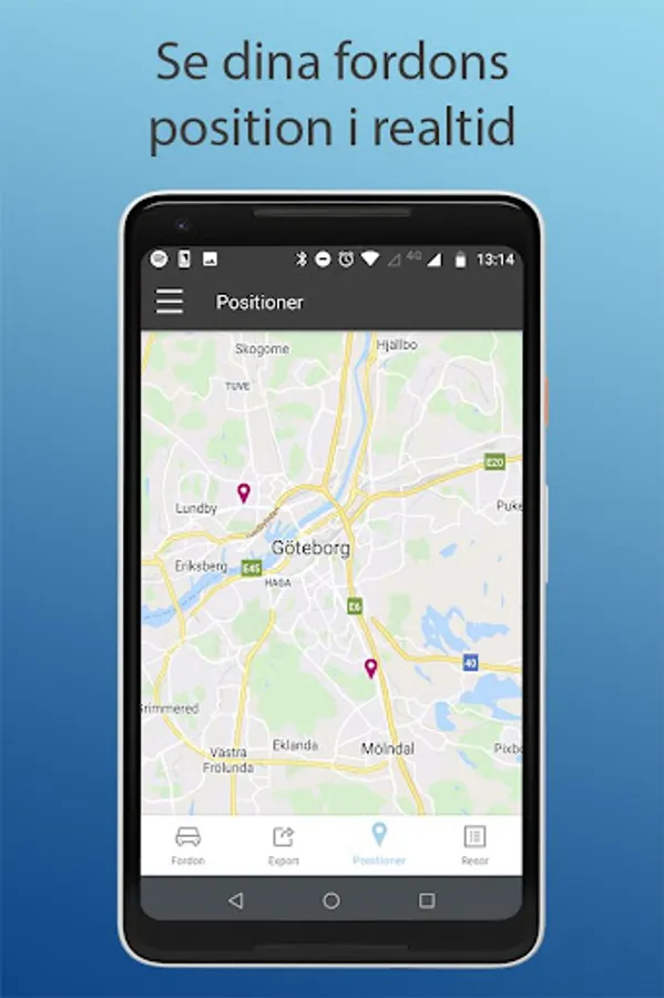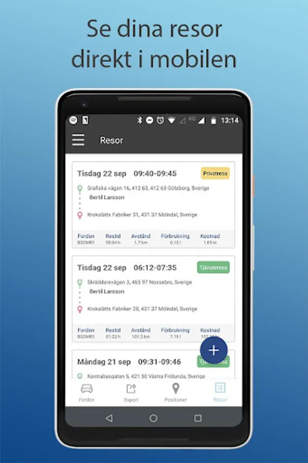 In the app, you get an overview of the vehicle's position, an overview of the vehicle's journeys and in a smooth way make changes to completed journeys.