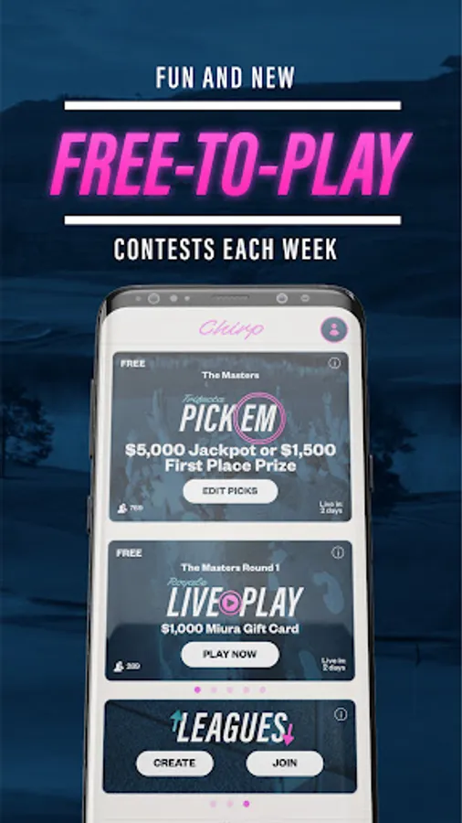 Chirp Golf is your home for the best of real money Daily Fantasy Sports (DFS) and Free-To-Play games. Featuring simple to play, easy to learn, and fun games, Chirp Golf has something for every golf fan.