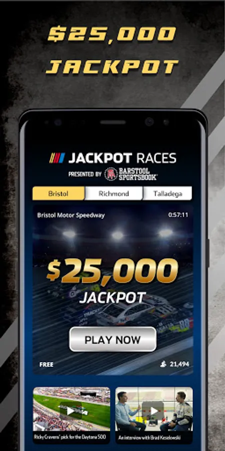 NO PURCHASE NECESSARY. Void where prohibited. Legal residents of the 50 US states who are 21 or older. See Official Rules at https://www.pngaming.com/nascar-jackpot-races for complete details.