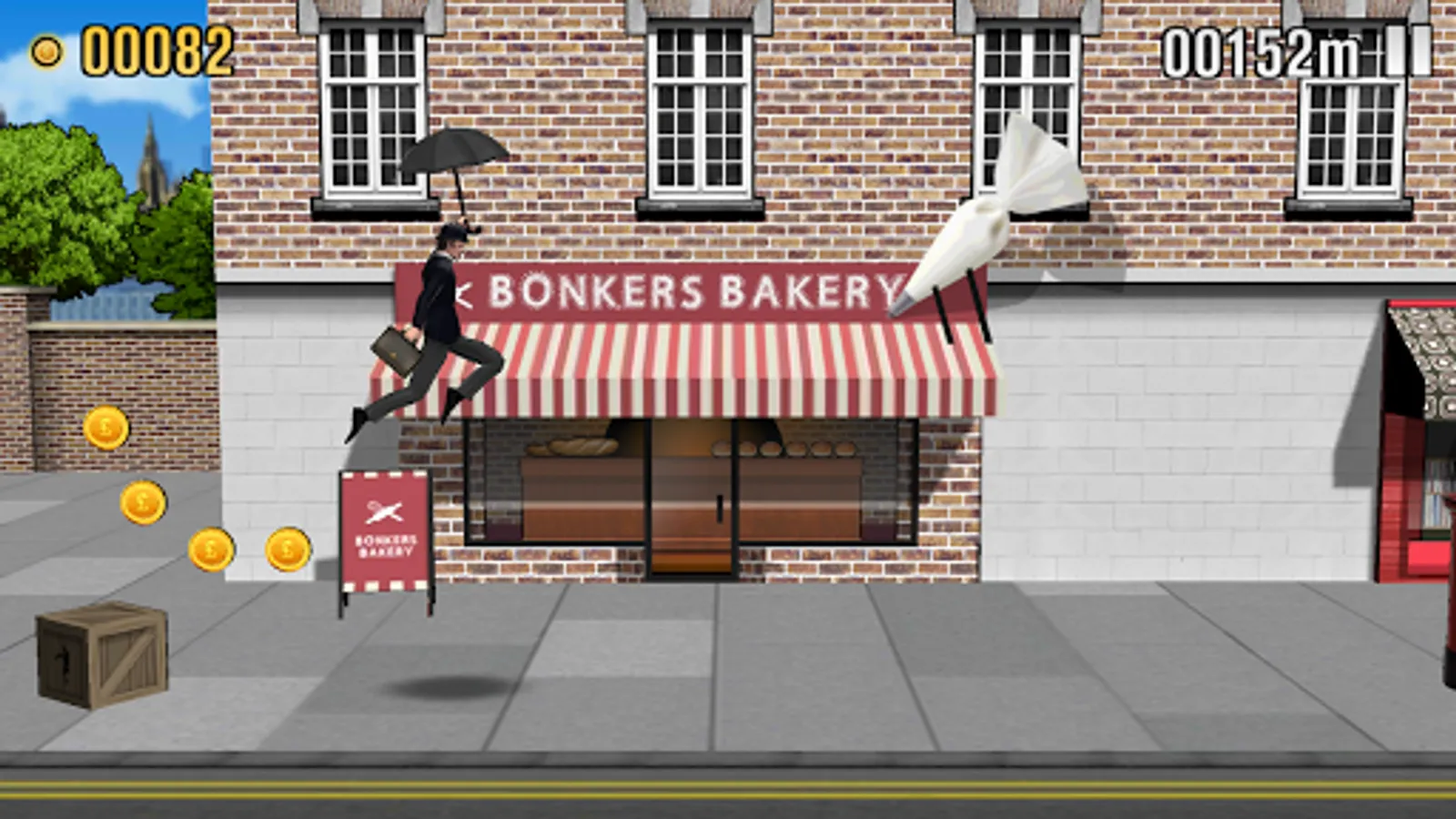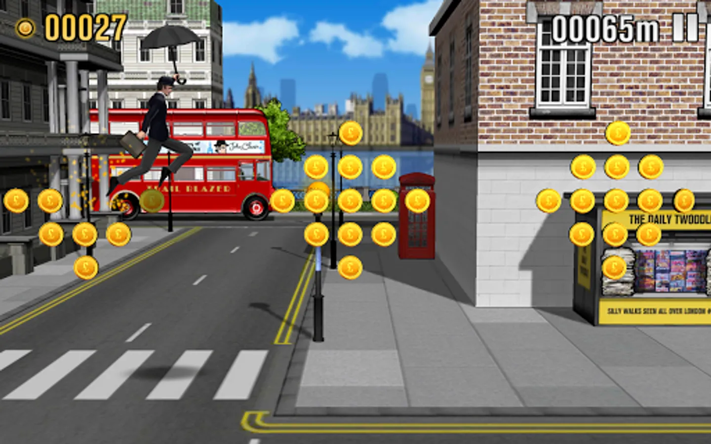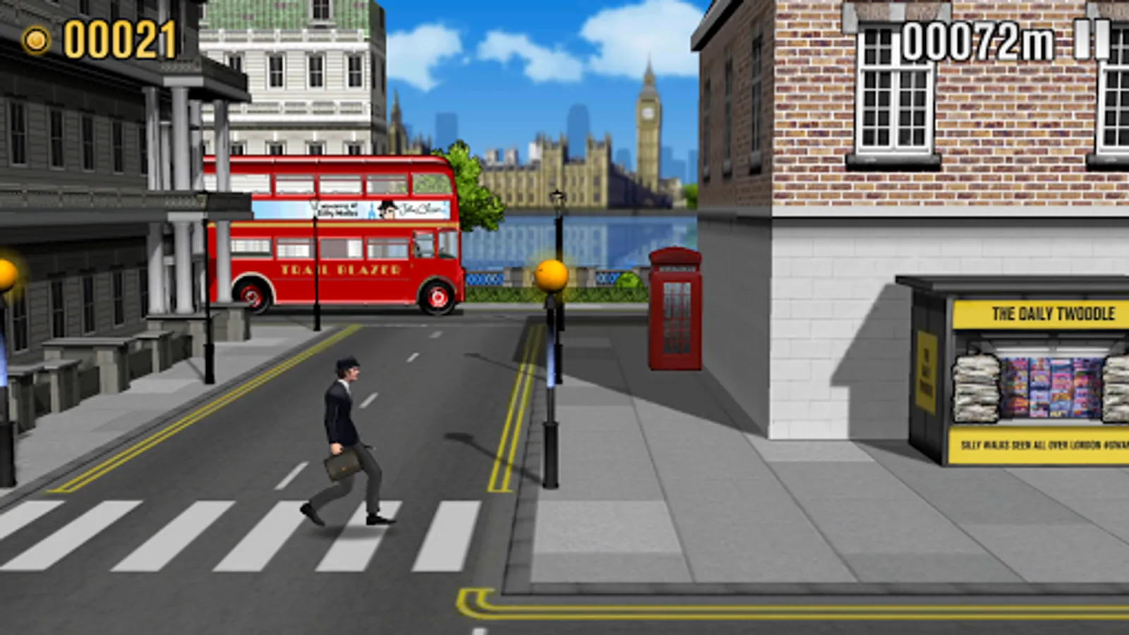 As you and your stiff upper lip travel through the streets of London take care to avoid obstacles and pesky pigeons. Bank coins and collect power ups to help take your walk to new heights of silliness.