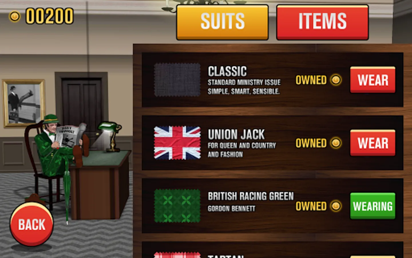 • Use your banked coins to buy sillier suits and enhanced power ups