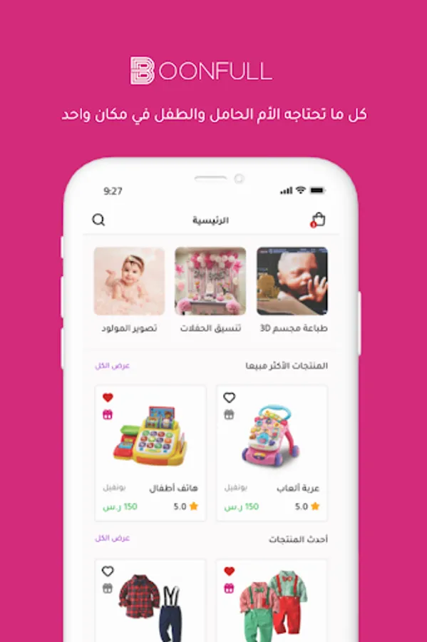 Baby Basket: The electronic application displays a variety of products that are suitable for the pregnant woman and her child up to 4 years old.