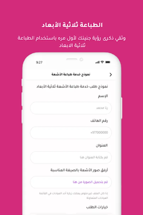 Documenting memories using 3D printing of the fetus: 3D printing on demand of the rays of the fetus, which is processed by a specialized technical team equipped with the capabilities of 3D printing laboratories.
