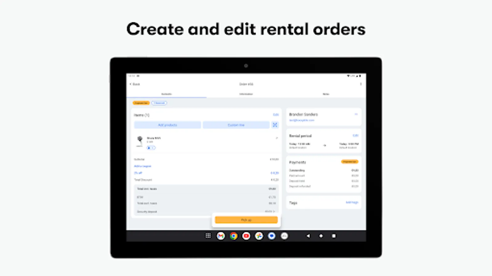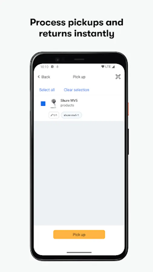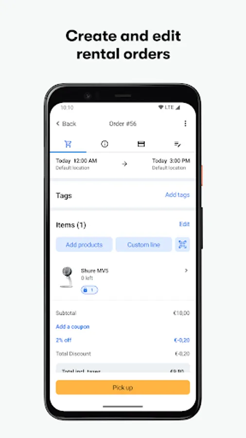 The app's built-in barcode scanner allows you to scan products to add them to orders, mark them as picked up, or mark them as returned. You can also associate barcodes with products without using your PC or laptop for a more straightforward implementation of barcodes within your inventory.