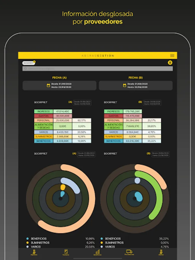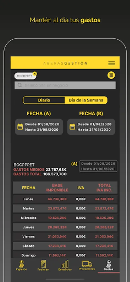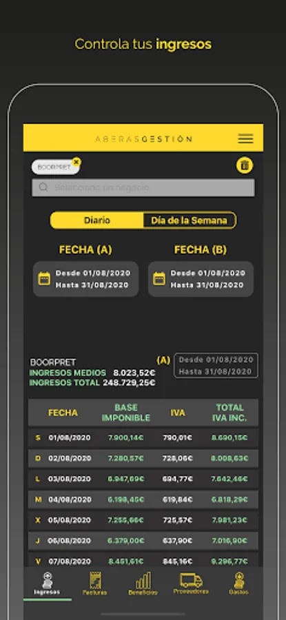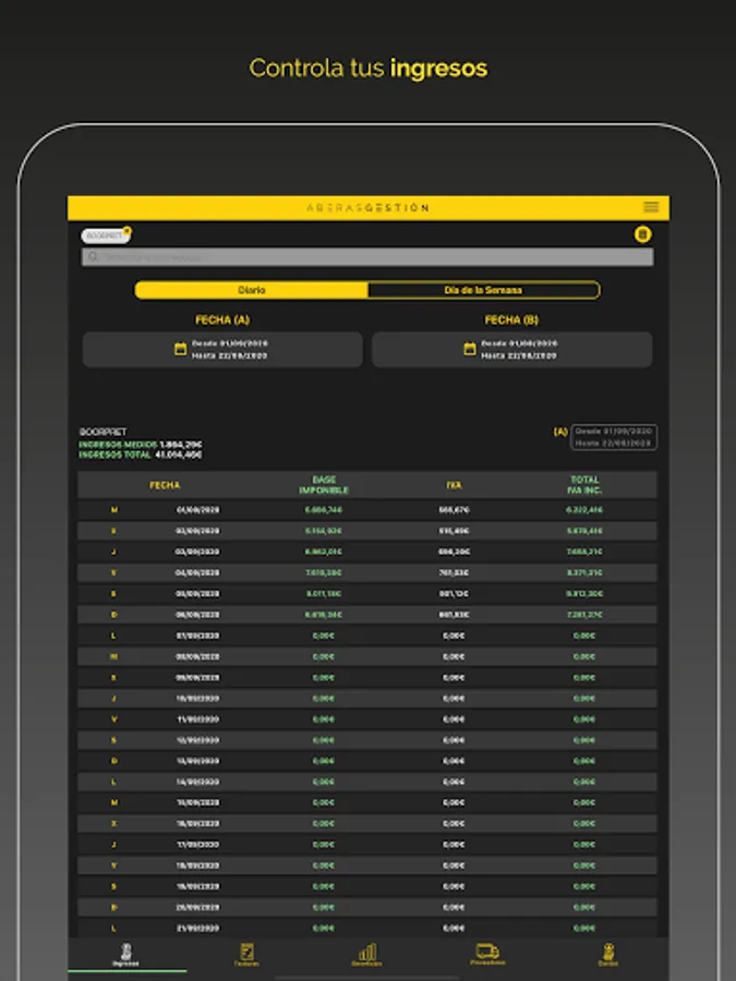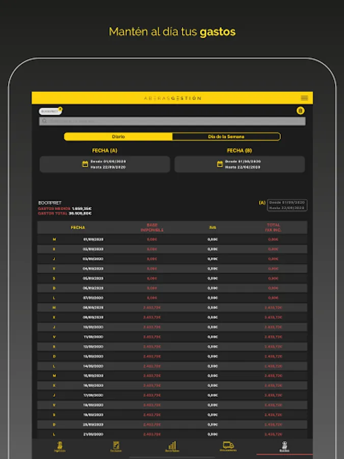 All income and expenses are updated daily, so that you can compare the data daily with the previous week, the previous month, the previous year or the dates you want.