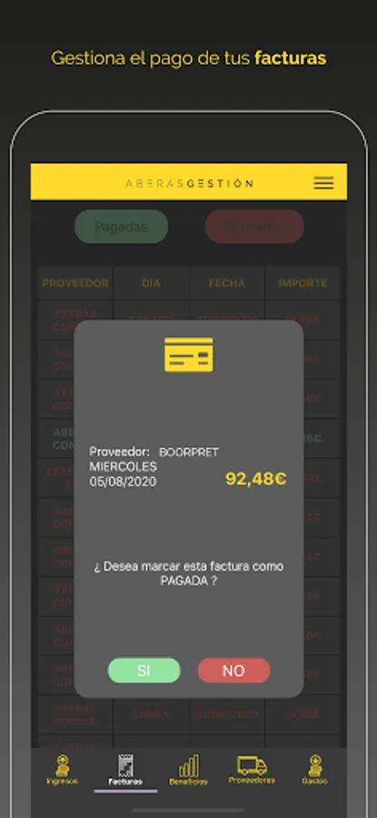 It also allows you to control all supplier invoices and mark those that you have already paid to know how much you buy from a supplier and how many invoices you have paid or pending payment.