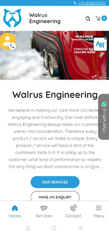 We believe in making car care more connected, engaging and trustworthy than ever before. Walrus Engineering always takes our customers wishes into consideration. Therefore every product / service we make is unique. Every product / service will have a stint of the customers taste in it. It is solely up to the customer what kind of performance as require, the only thing we don't compromise is on Quality.We were never felt satisfied by the quality of work available at the market in India. Therefore, the like-minded people joined hands to create Walrus Engineering, with main intention to provide quality customised products and services to the customers.