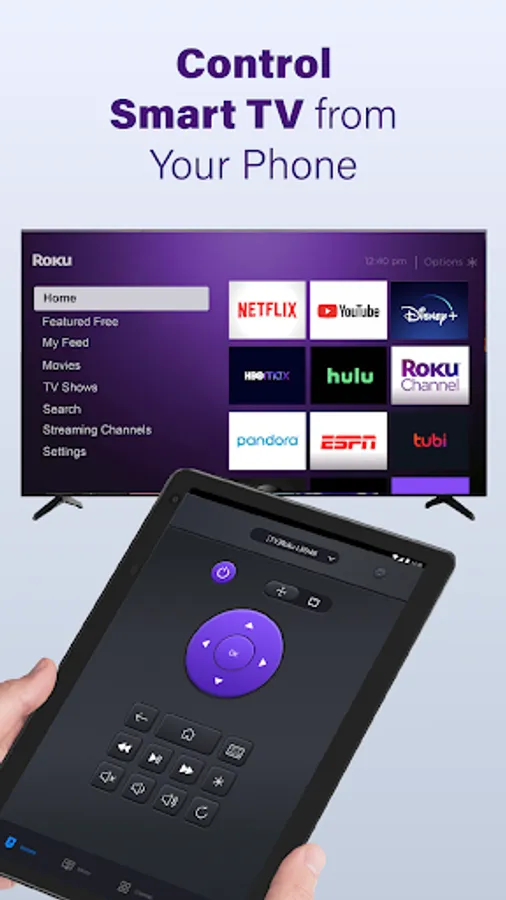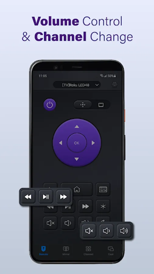 TV Remote for Ruku & Smart TV is a helpful TV remote control app that can get you out of the trouble of frequently switching remote controls between multiple smart TVs, such as Roku, Fire, LG, Samsung, TCL TV. As long as it is under the same WiFi as your Smart TV, this multifunctional remote app can help you easily turn on/off the TV, manage channels, change volume and control content playback just like a real physical remote control.