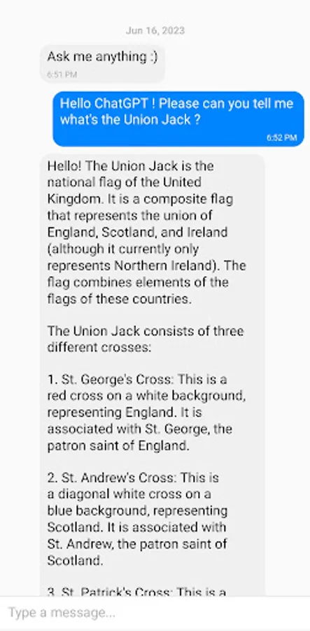With ChatAi Pocket, use ChatGPT on your phone as if you were using it on the web. By downloading our application, you will only have to click on our icon to access ChatGTP. The current version is that of the public API of OpenAI (architecture 3.5).