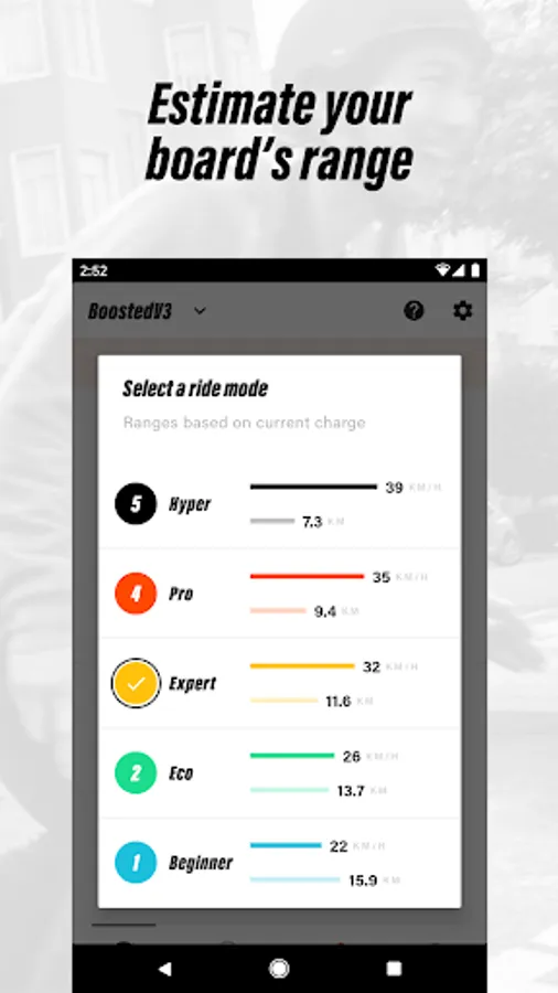 • Estimate your range based on battery level, mode, and rider settings