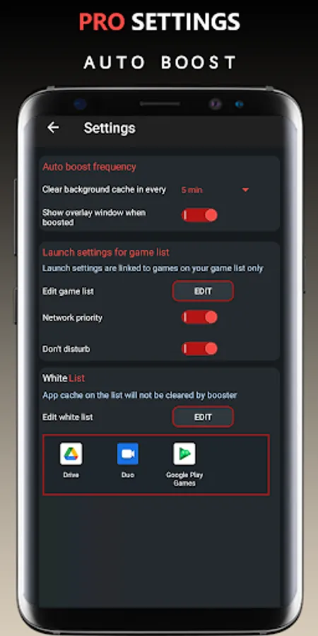 Automatically boost, clear background cache to reduce device load for the best gaming experience.