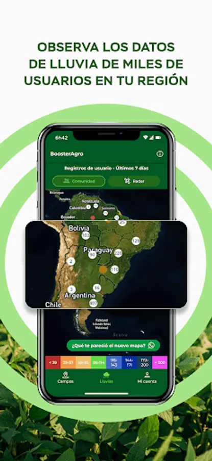 * Rainfall Map: Allows you to visualize the cumulative rainfall of the last 7 days in the area of your farms. The data comes from the user's rainfall raingauge records.