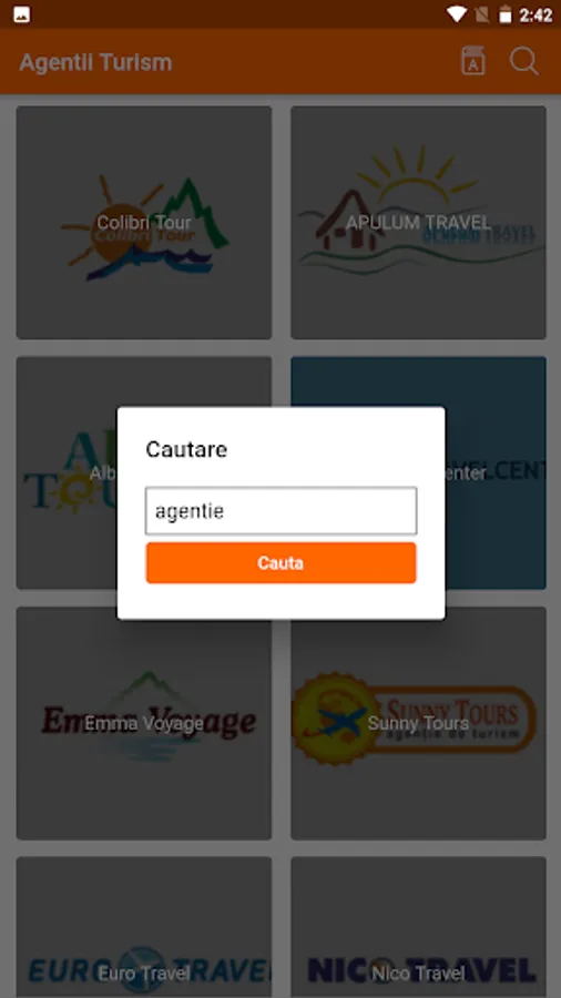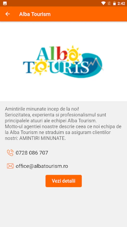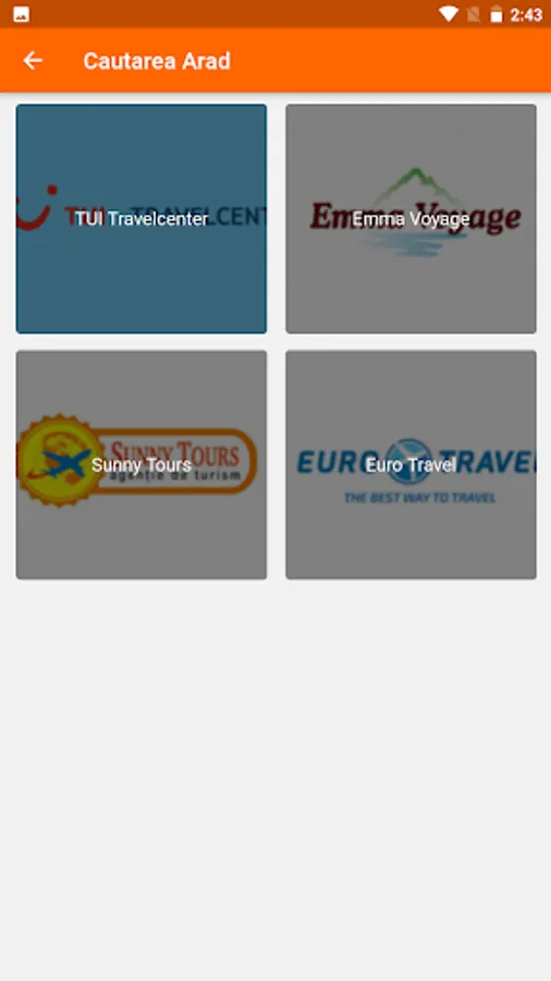 The application offers complete information about the big travel agencies that have offers for: holidays, trips, cruises, plane tickets, charters, destinations and tourist circuits, stays, in Romania.