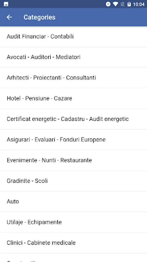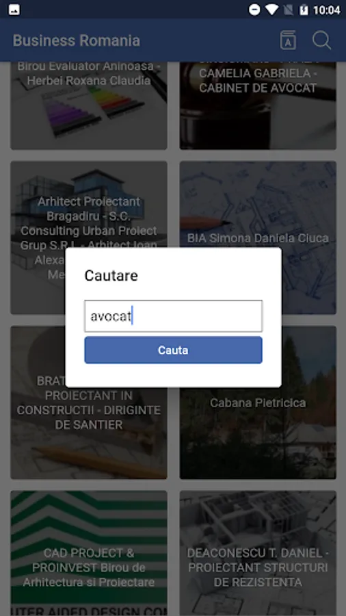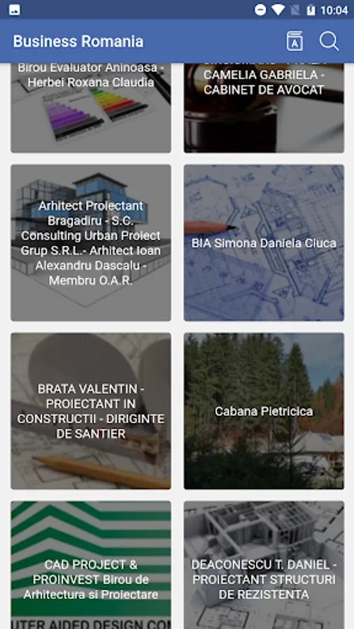 The application provides complete information about specialized units on a wide range of services in the fields: lawyers mediators architects designers consultants financial audit accountants energy certificate cadastre audit insurance evaluations European funds hotel pension accommodation kindergartens schools clinics medical events weddings restaurants machinery agriculture, distribution construction transport, all located on the territory of Romania.