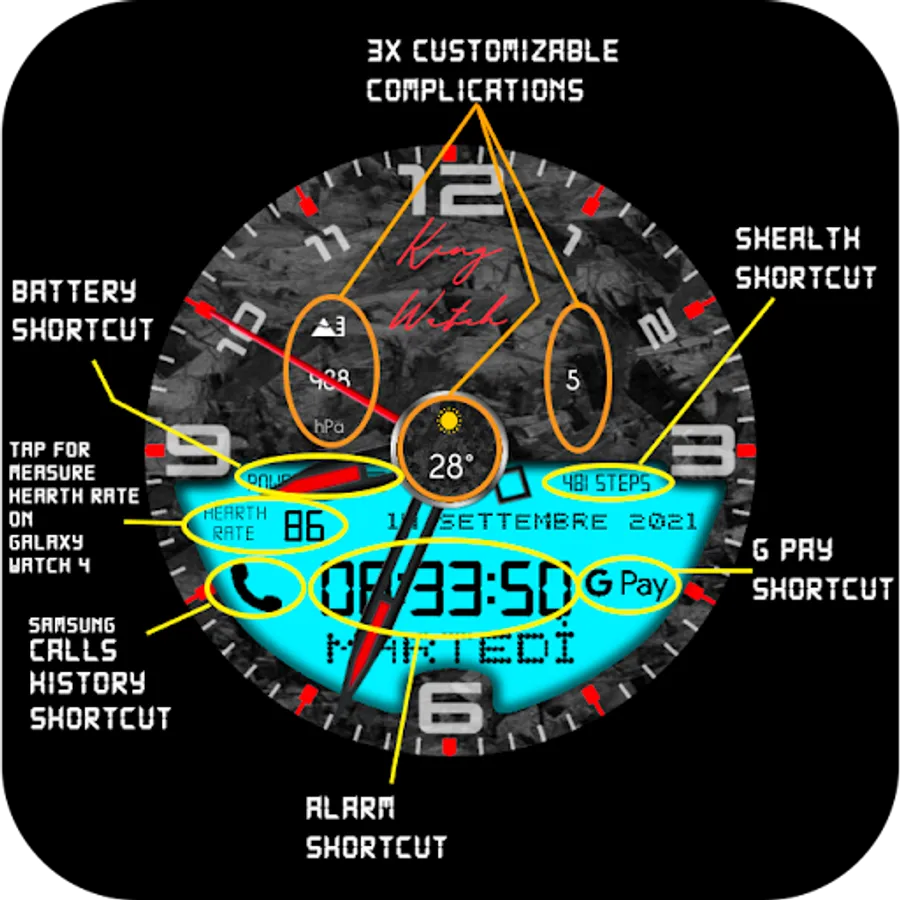 Watchface for Circle Display of WearOs like Galaxy Watch 4 (WearOS 3.0).