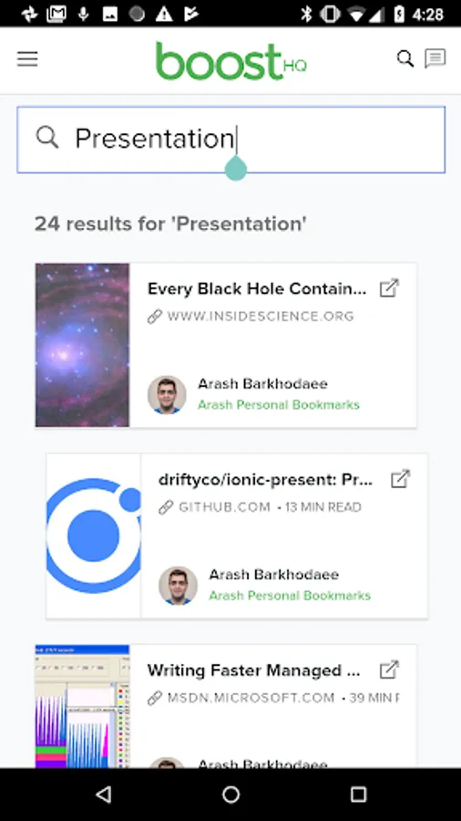 With BoostHQ, content is organized into topic specific groups and can be shared from all the sources you already use (Safari, DropBox, Youtube, Google Docs, etc). Feedback and analytics on shared content lets you know what your team finds useful.