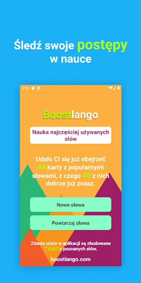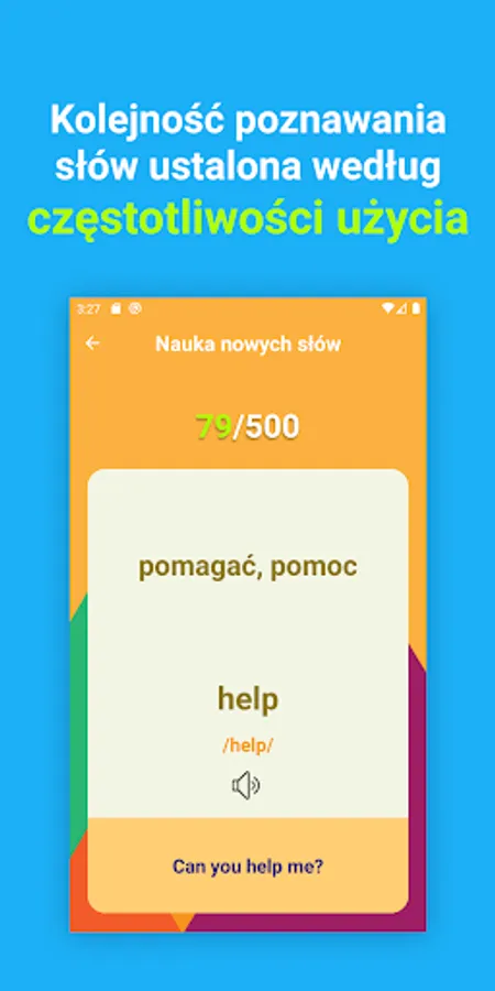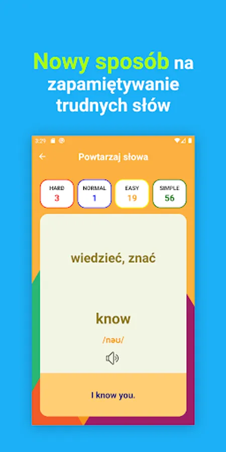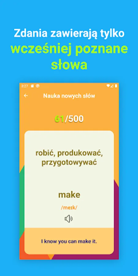 Each word in the application has an example use in a sentence that consists only of words previously learned. This will make it easier for you to understand the content.