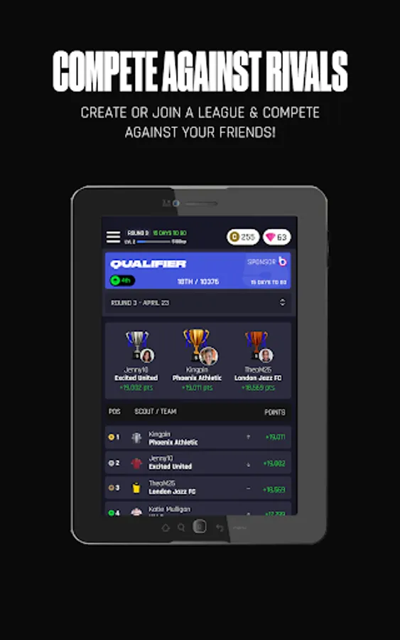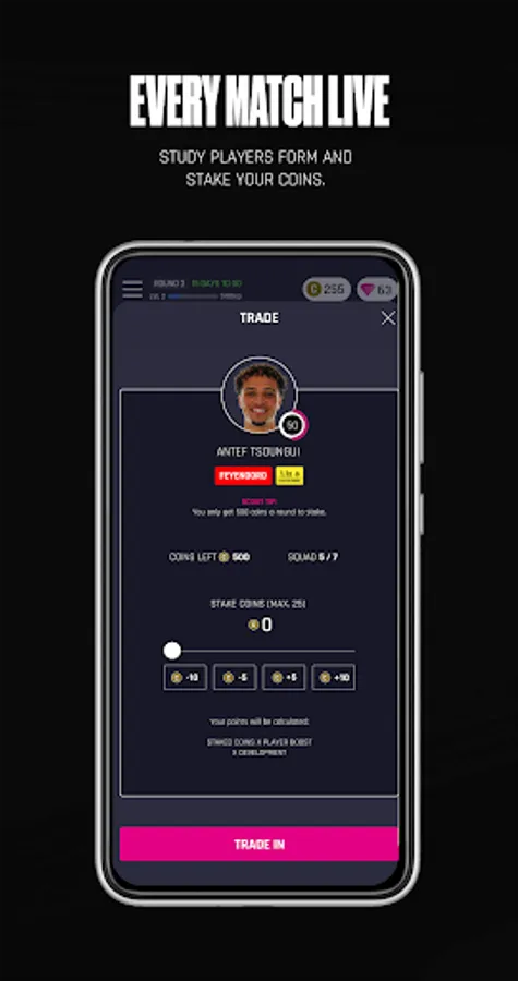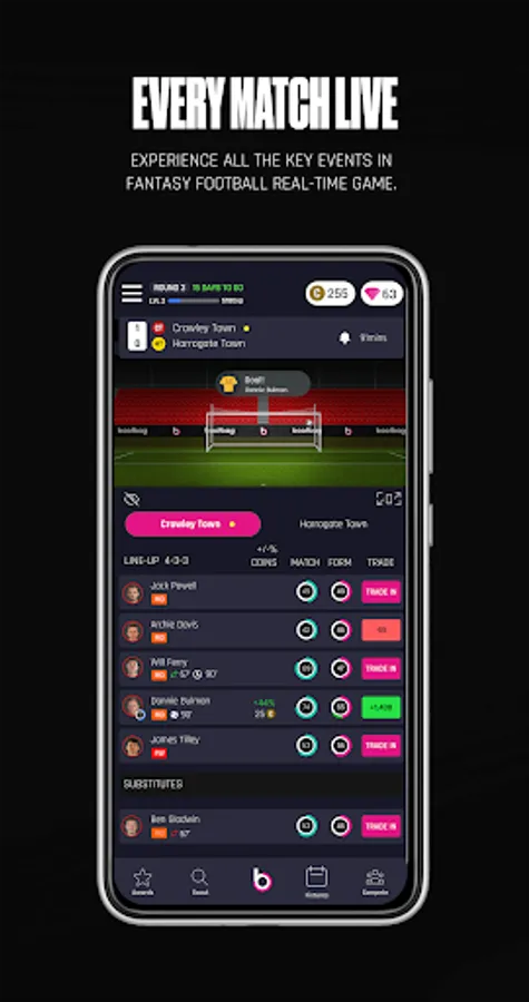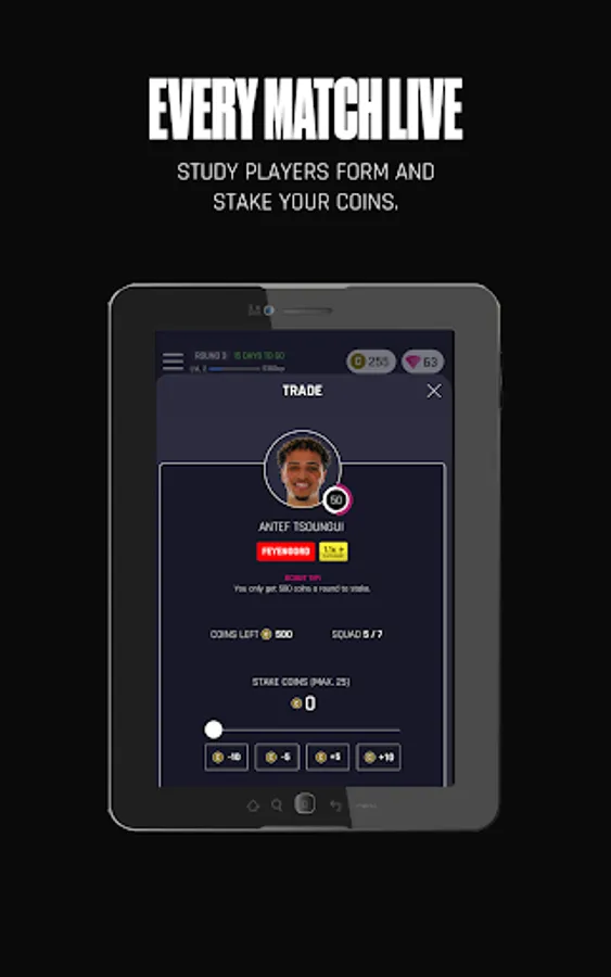 Once your transfers have been made, it’s time to watch your tactical decisions perform or flop. Every fixture is real, with their match day performance throughout the monthly round all that matters. Buy wisely and sell each player at their rating peak to score you the most points possible. Deciding your stake in each player will act as a multiplier to the points you score! Your skills will be rewarded for picking players from the lower divisions with help from the 'Player Boost'.