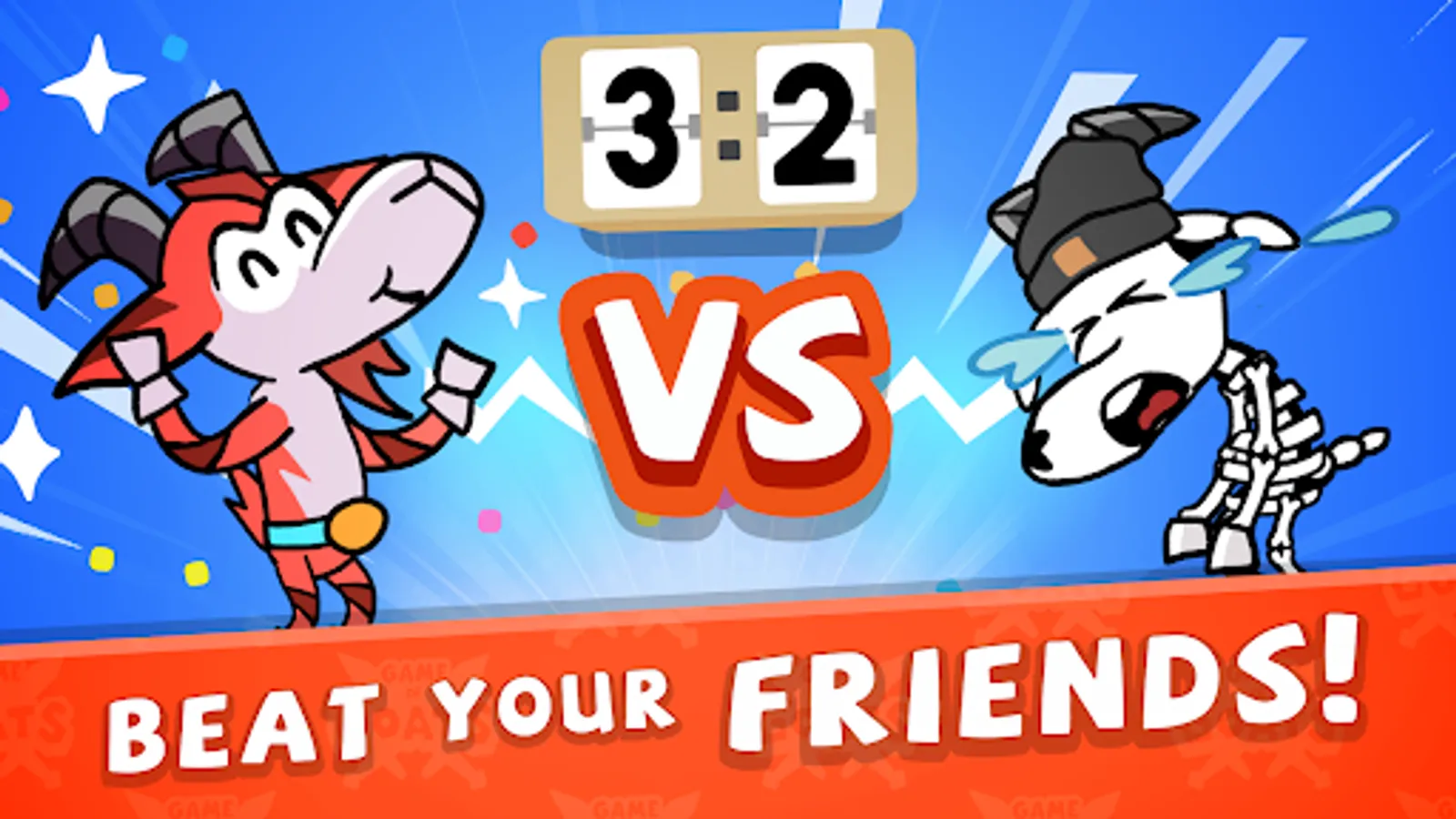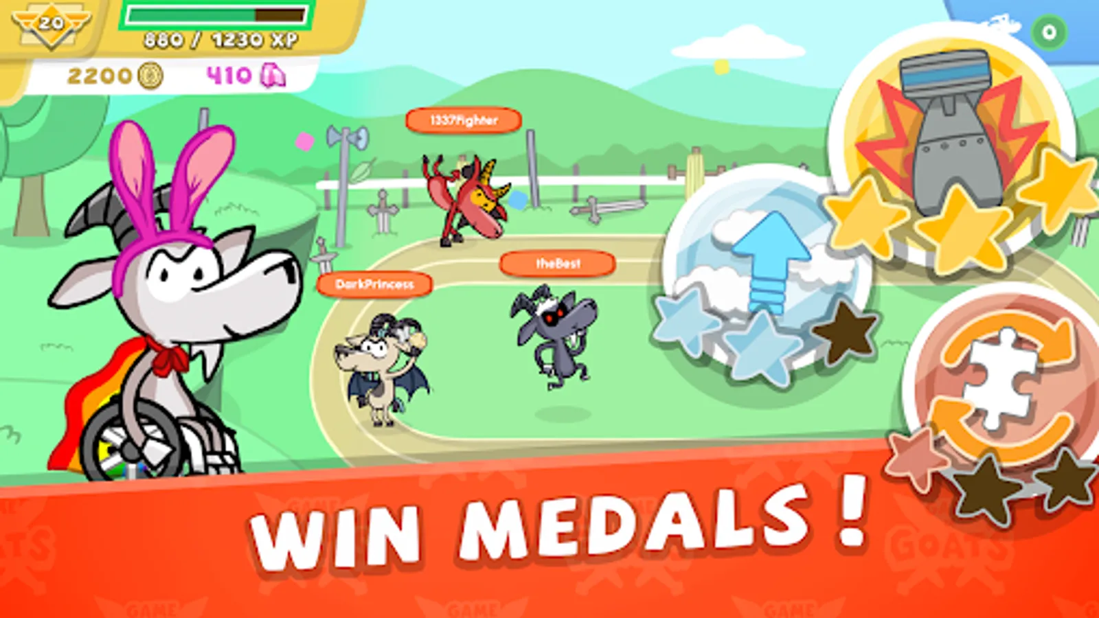 The first and best multiplayer puzzle, skill and action game has arrived! Play ‘Game of Goats’ with players around the world and compare your level of speed, focus and skills in turn-based challenges. This is a special gaming experience providing lots of fun, rewards and on a big variety of minigames. Find out who is smarter and faster now!