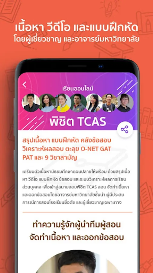 The content for all subjects are provided by relevant university instructors. They are from prominent universities like Thammasat, Chalalongkorn, Kasetsart and Silpakorn. The content structure is aligned with the standardized structure from Thailand Ministry of Education so that the content is ensured to be relevant for Thai high school students.