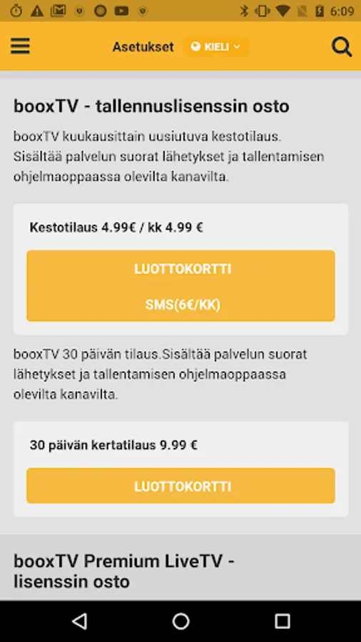 booxTV allows you to view recorded TV-shows from Finnish free-to-air channels over 4G and Wi-Fi by streaming from the service.