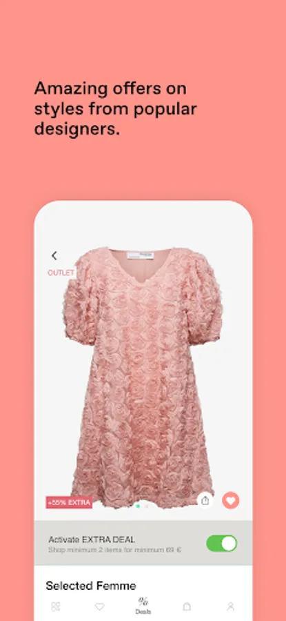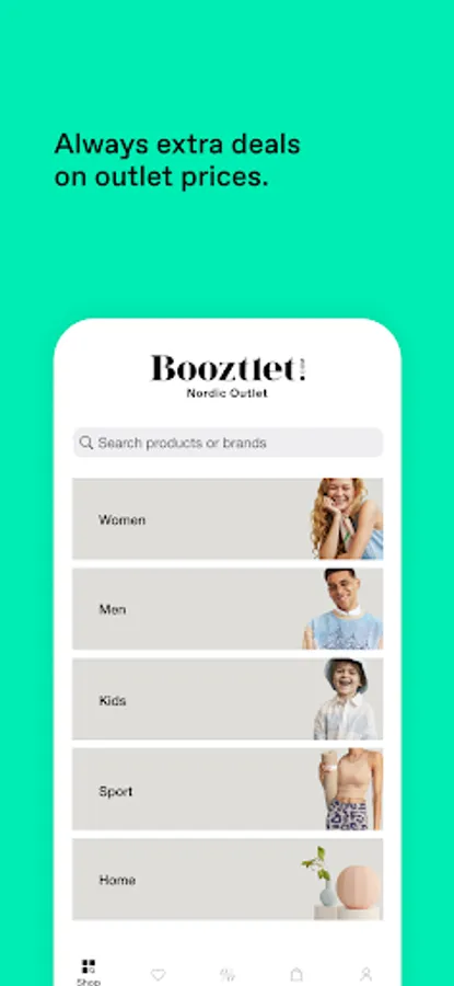 Deals, deals, deals! More great deals than you have ever dreamt of in one place. Daily deals makes it easier to find your special bargain. Download the app and start scrolling - Booztlet, your Nordic Outlet. Our app is the perfect tool for finding outlet prices on cheap designer wear. And by outlet prices, we mean seriously discounted. We're talking ""Holy cow, I can't believe I just got this for so little!"" discounted.
