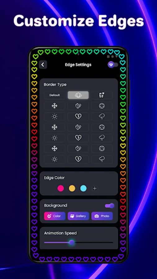 The 🚥 ledge can adapt to displays of any size and devices. Its color palette is huge and you will be able to choose from ambient light. Just imagine how cool it will look when you choose your selfie or a photo of someone you love as your edge lighting wallpapers.